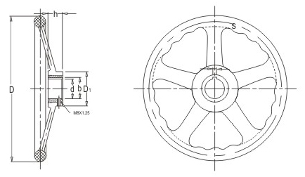 JS.101011 五輻手輪 顏色:黑色 材質(zhì):增強(qiáng)尼龍 用途:適用于大型、重型機(jī)械的裝備,多用于汽輪機(jī)、船舶等行業(yè) 特性:經(jīng)濟(jì)環(huán)保、抗摔、輕巧靈便、質(zhì)感強(qiáng)檔次高。鋼制鐵芯表面處理防銹能力強(qiáng)。標(biāo)準(zhǔn)化使用,安裝簡(jiǎn)便