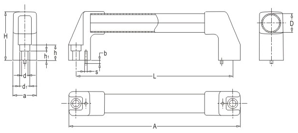 JS.104007 不銹鋼方拉手 顏色:銀色 材質(zhì):不銹鋼管+鋅鋁合金、增強(qiáng)尼龍 用途:適用于各類數(shù)控機(jī)械防護(hù)門(mén) 特性:?jiǎn)」怙椕妗⑼庑蚊烙^、機(jī)械強(qiáng)度高、堅(jiān)固耐用、標(biāo)準(zhǔn)化使用、安裝簡(jiǎn)便
