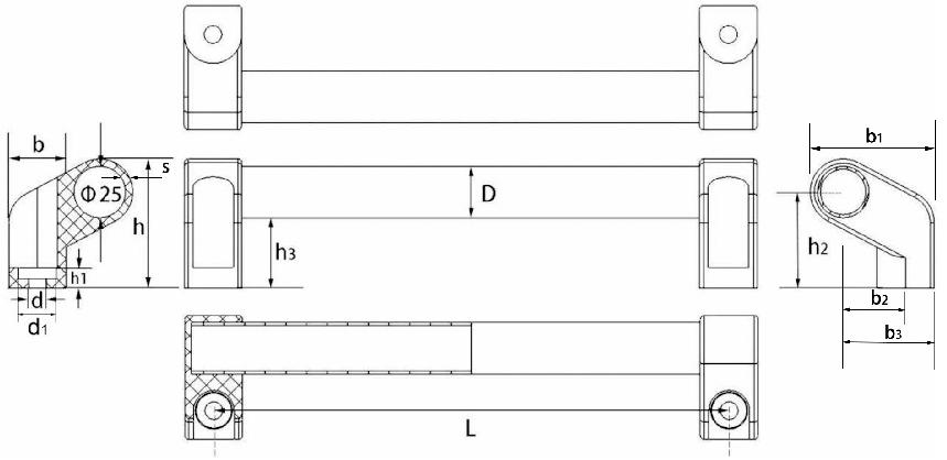 材質(zhì):管身(鋁合金)、拉手支座(增強(qiáng)尼龍含30%玻璃纖維)